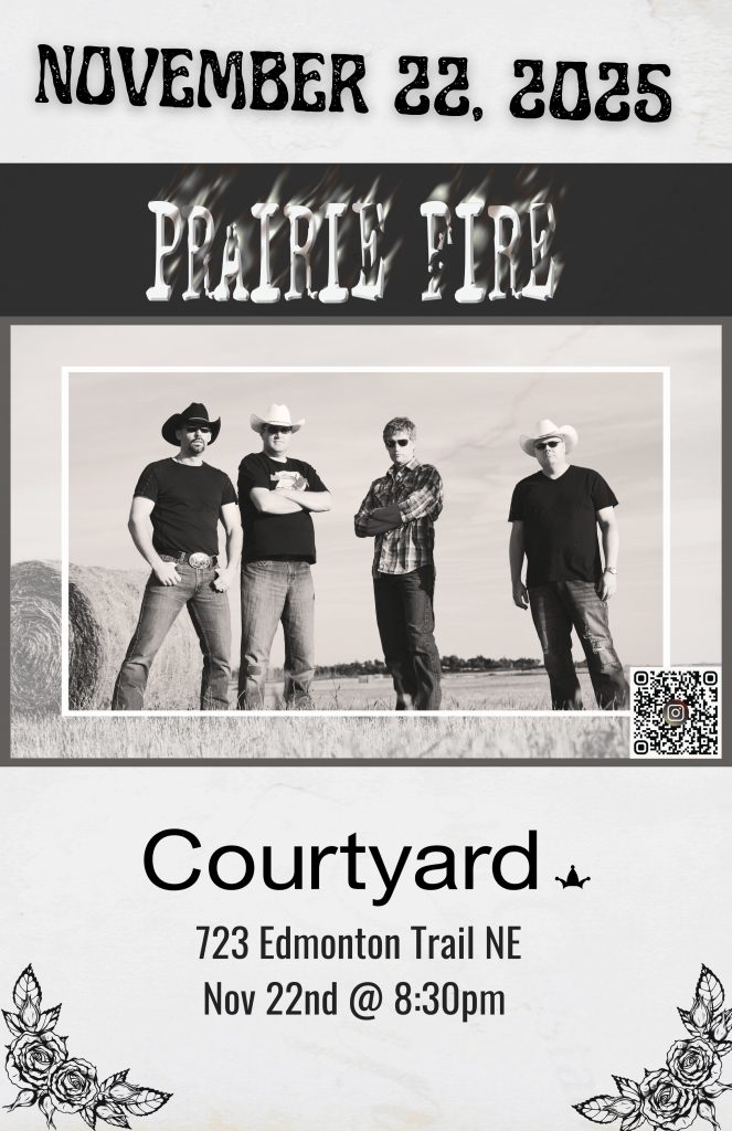 After a successful Three Show Stampede performance in 2024, Prairie Fire is back for more. That’s right, Four Shows for Stampede 2025. This year marks Prairie Fire‘s 20th Anniversary and we haven’t aged a bit. Prairie Fire will be performing at the pre-pre-Stampede show on June 7th at Courtyard, pre-Stampede show on June 21st at Nixx Pub, and finishing our tour at Courtyard on July 5th and 12th. Prairie Fire met some amazing people last year, and we are looking forward to meeting old friends and new faces in 2025. Join us at any of our shows and share your love for music / entertainment / beer drinking / dancing / two-stepping / line dancing / did I mention beer drinking?